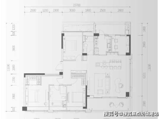 D2户型(建面约174㎡四房两厅两卫):高端改善型户型!