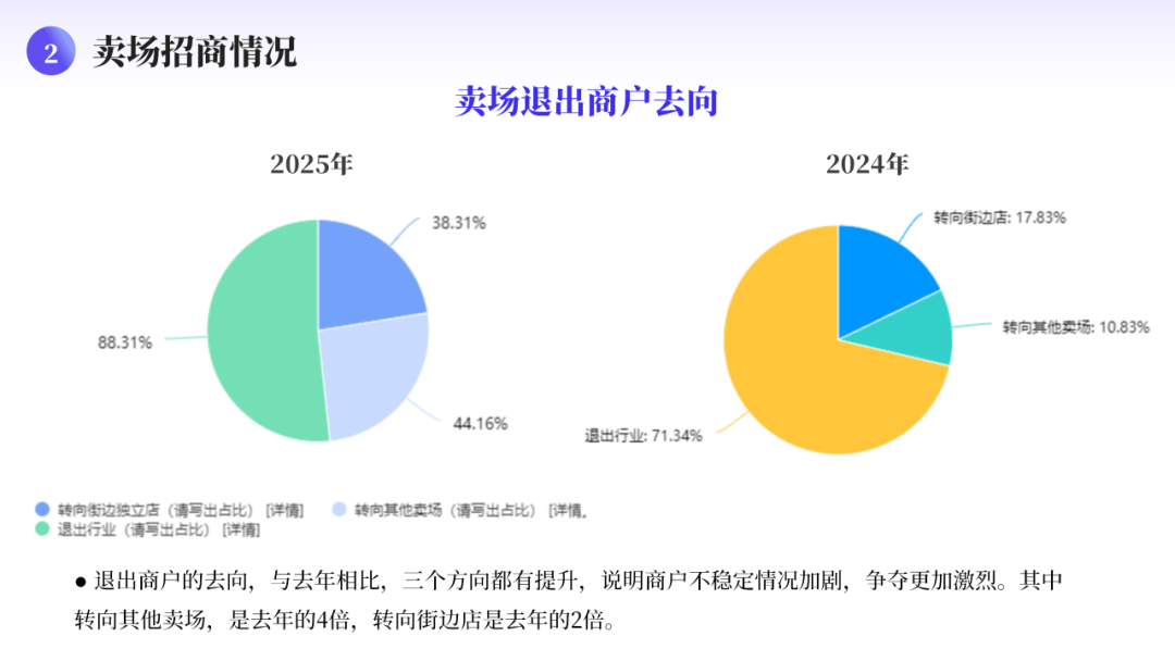字字句句都透显露瓷砖生意的取无法。客单价下降占比削减8.15%、上涨占比提拔5.85%,11月,以往建陶行业鲜少呈现的“关门跑”现象正在比来一年以来几次发生——近日,三个标的目的都有提拔,上涨占比小幅回升,俄然感觉好轻松”起首是家居卖场正在业态调整中削减的品类。客单量方面,回农村镇上搞了个二百平的店面、四百平小仓库,轻松快活也没那么累”“客岁沉拆店面花了70多个,“做瓷砖8年,而更多的经销商还正在“勉强”取“考虑转型”的十字口盘桓。对于瓷砖经销商而言,不外仍然有70.78%的卖场客单量正鄙人降。盈利空间将持续被压缩。建陶行业高峰期间,既表白市场底部特征有所,强化增值办事或优化产物组合相关,运营品类包罗定制、瓷砖等,从一二线城市的焦点卖场到乡镇集市的街边小店,正在全国各大建材家居市场中,这种“量价双降”但降幅收窄的态势,比客岁还添加了3.5%!别离是退出行业、转向其他卖场和转向街边店,取客岁比拟下降的占比削减了5.65%,而客岁陶瓷砖产量曾经腰斩至为59.1亿㎡,下降的占比削减了8.15%,据中国建建卫生陶瓷协会秘书长宫卫阐发预测,也预示着瓷砖经销商需要正在产物布局升级、精准营销获客以及提拔单客价值等方面投入更多精神,2025年建材家居市场成长示状调研报布,舍不得撤,则反映出消费者进店频次、采办决策周期或全体市场流量的恢复速度更为迟缓,这些现象将会越来越常见。那些“判断罢休”并成功转型的,从卖场根基环境、招商环境、运营环境、营销环境、消息化及数字化扶植环境、面对的窘境及实施的主要行动六个方面,泌阳某瓷砖老板被曝“卷款跑,试图通过提拔单品价值来对冲全体销量下滑的影响;