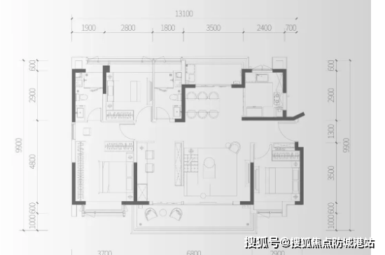 D2户型(建面约174㎡四房两厅两卫):高端改善型户型!
